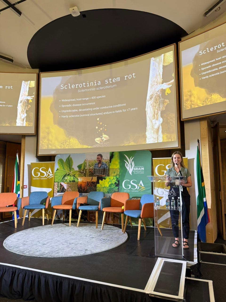 We are also proud to celebrate Mariana van Deventer, who presented in the PhD Student Presentation session with her presentation titled “Modelling the risk of Sclerotinia stem rot of canola in the Western Cape of South Africa for improved chemical control” and was awarded first prize. Well done, Mariana, we are very proud of you.
